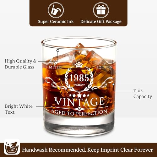 AOZITA 40th Birthday Gifts for Men - 40th Birthday Decorations for Men, Party Supplies - 40th Anniversary Ideas for Him, Dad, Husband, Friends - 11oz Whiskey Glass