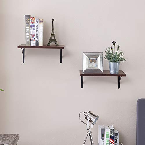 Superjare Wall Mounted Floating Shelves, Set of 2, Wide Display Ledges, 11.8 Inch Deep, Large Storage Rack for Room/ Kitchen/ Office - Walnut Brown, 15.7”L × 11.8”W × 6.8”H