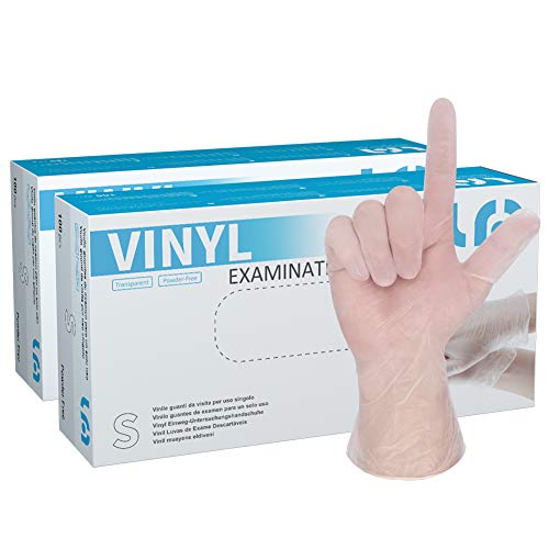 LyncMed Disposable Vinyl Gloves, for Home & Kitchen, Powder Free, Latex Rubber Free, 4 mil, Clear (Pack of 200) (Small)