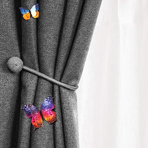 • GINDOLY Magnetic Curtain Tiebacks, 4Pack Decorative Drape Holdbacks Drape Holder with Strong Magnet,Free 12PCS 3D Butterfly Decor for Home Office (Gray)