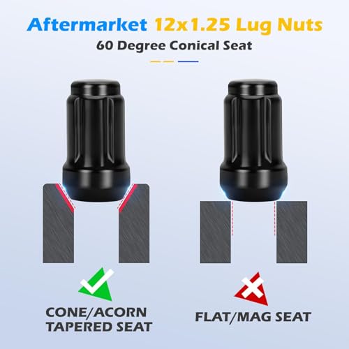Dynofit M12x1.25 Black Lug Nuts Set for 350Z 370Z Altima Infinit Q50 Q60, 20pcs Closed End Spline Wheel Nuts fit Subaru Forester BRZ Outback WRX, 12mm-1.25 Conical Seat Lugnut for Aftermarket Wheel
