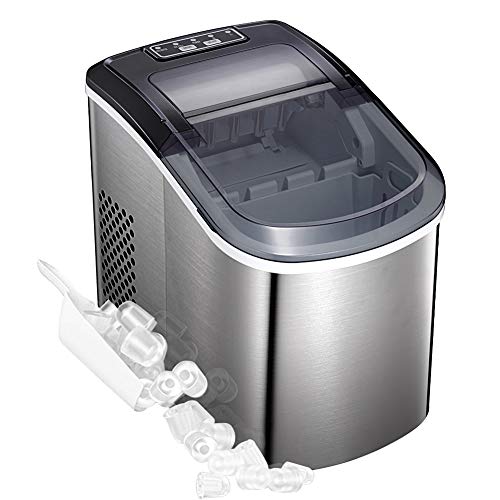 Tavata Portable Automatic Stainless Steel Ice Maker Machine for Countertop, 9 Ice Cubes Ready in 6-8 Minutes,Makes 26 lbs of Ice per 24 Hours,with See-through Lid and LED Lights (Classic) , Classic Stainless Steel Item Sku: