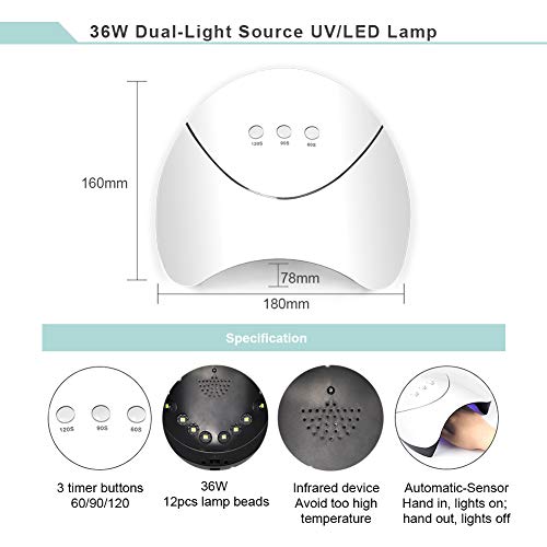 • Gel Nail Polish Starter Kit with 36W LED Curing Lamp 8 Colors Gel Nail Polish and No Wipe Top and Base Coat with Full DIY Gel Manicure Nail Art Tools Kit