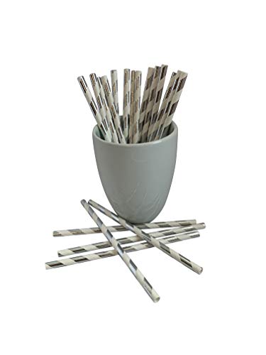 Kingseal FSC Certified Paper Disposable Cocktail Straws, Stirrers, Unwrapped, 6mm Diameter, 5.75" Length, White and Silver Stripe, Biodegradable, Earth Friendly, Bulk Pack - 500 straws per pack, Silver Swirl Stripe, 5.75 Inches