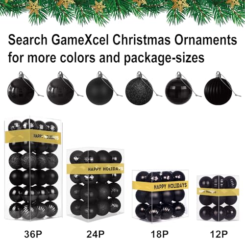 GameXcel Black 3.2" Large Christmas Balls - Christmas Tree Decoration Ornaments Shatterproof Hanging Balls for Birthday Halloween Holiday Wedding Decorations Set of 10pcs, 3.2"- 10PCS Item Sku: