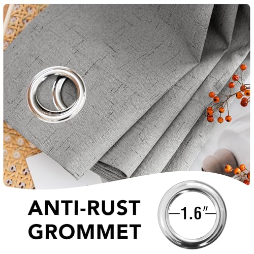 H.VERSAILTEX Linen Blackout Curtains 54 Inches Long 100% Blackout Thermal Insulated Textured Linen Look Curtain Draperies Anti-Rust Grommet, Energy Saving with White Liner, 2 Panels, Dove Gray