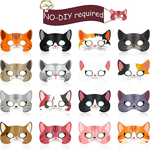 Blulu 16 Pieces Kitty Cat Theme Birthday Party Supplies, Halloween Cat Masks Kitten Masks for Cat Theme Party Kitty Party Costumes Photo Prop Decoration, unisex-adult, Multicoloured