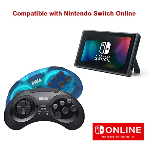 Retro-Bit Official Sega Genesis Bluetooth Controller 8-Button Arcade Pad for Nintendo Switch, Android, PC, Mac, Steam (Clear Blue) Item Sku: