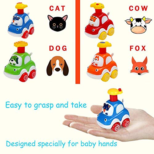Pull Back Cars for Kids Toddler Toys Vehicles Set of 4 Push Go Friction Powered Car, Preschool Gifts Boys & Girls