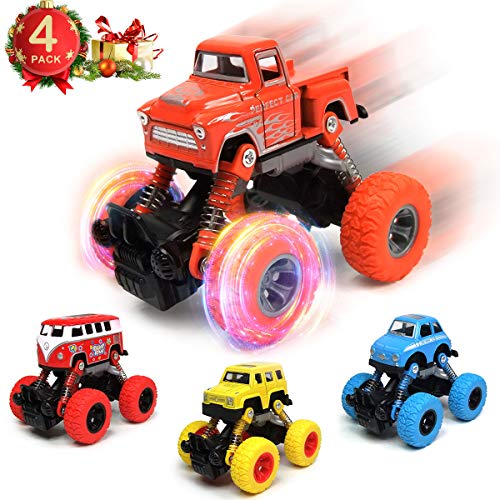 • WisToyz Monster Trucks for Boys Pull Back Cars (4 Pack), Toys Cars Toys Trucks for 2-7 Years Old Boys, Monster Trucks with Big Wheels Textured Rubber Tires, Pull Back and Go, Kids