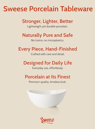 Sweese 7 Inch Porcelain 28 oz Bowls Set of 6, for Soup | Cereal | Pasta | Salad | Ramen | - Microwave, Dishwasher, and Oven Safe - White Item Sku: