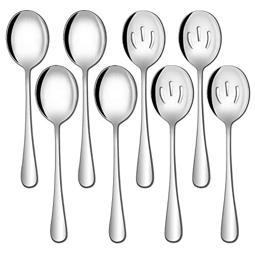 Hiware 8 Pack Stainless Steel Serving Spoons Set Includes 4 Serving Spoons and 4 Slotted Serving Spoons, Buffet Serving Utensils - Mirror Polished, Dishwasher Safe