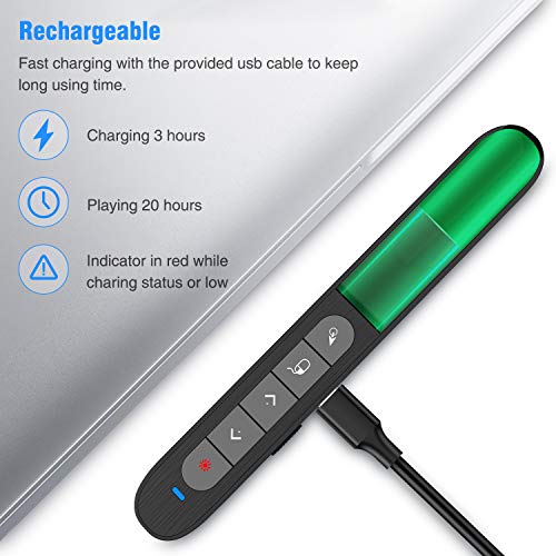 DinoFire Wireless Presenter Remote with Air Mouse, Rechargeable PPT Presentation Pointer RF 2.4GZ PowerPoint Clicker Computer Slide Advancer