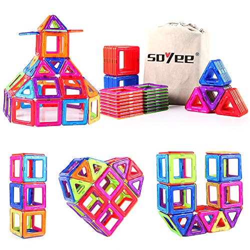 Soyee STEM Toys Magnetic Blocks Magnet Tiles Kids Building Stacking Game Toys for 3+ Year Old Boys and Girls Birthday Gift Idea - 56pcs Advanced Set Item Sku: