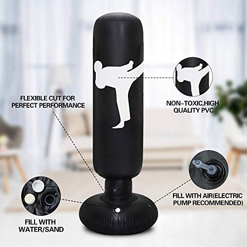 TUOWEI Kids Punching Bag, Inflatable Punching Bag for Kids 63Inch Freestanding Boxing Bag Bounce Back for Practicing Karate, Taekwondo, MMA, Kids Adults Punching Boxing Bag (Practice) (Black) Item Sku: