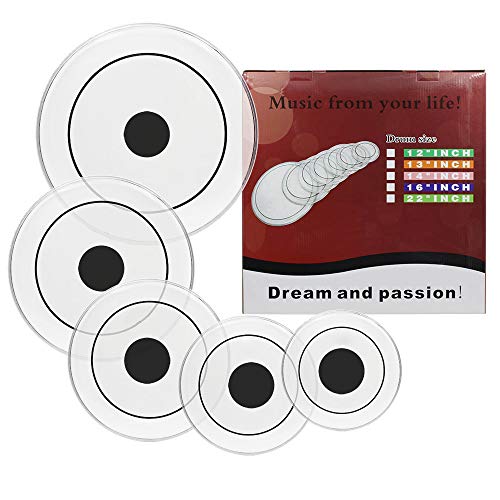 Kuyal Clear 5-Piece Drum Heads with Dot Pack Includes 12, 13, 14, 16 & 22 inch Transparent (Drum Heads with Dot)