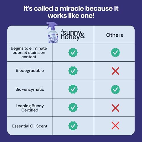 Sunny & Honey Pet Stain & Odor Miracle - 32 Fl Oz, Light Lavender Scent - Carpet Stain Remover & Urine Odor Eliminator - Upholstery Cleaner Spray - Enzyme Formula for Upholstery, Couch & Mattress, 32 Fl Oz (Pack of 1)