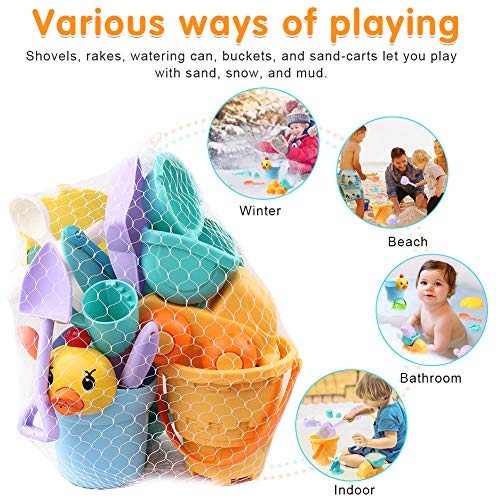 StillCool 26pcs Kids Beach Sand Toys Set, Includes Sand Water Wheel, Castle Molds, Truck Bucket, Beach Shovels RakesTool Kit, Hourglass, Sea Animal Molds, Watering Can, with Mesh Bag