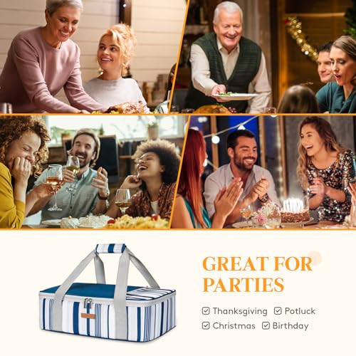 LUNCIA Insulated Casserole Carrier for Hot or Cold Food, Lasagna Lugger Tote for Potluck Parties/Picnic/Cookouts, Fits 9"x13" Baking Dish, Blue, 15.7 x 11.4 x 4.7inch Item Sku: