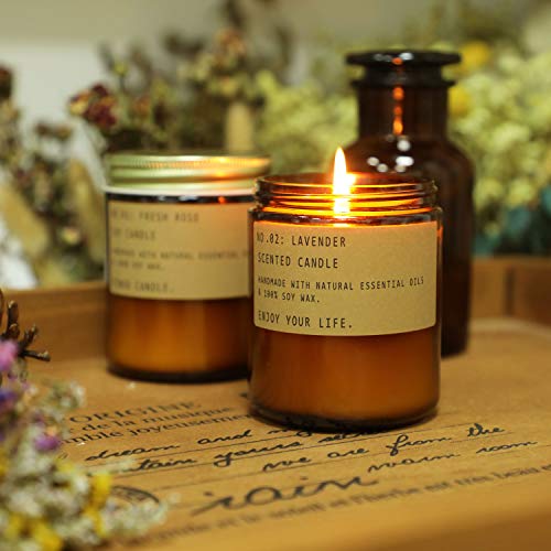 Scented Aromatherapy Candles for Home, Long Burning Jar Soy Candles, Organic Candles for Stress Relief Relaxation, Gifts Set for Women, Lavender & Fresh Rose, 2 Pack