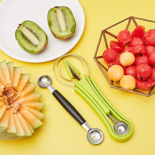 Patelai 2 Pieces Melon Baller Scoop Set, 4 in 1 Fruit Cutters Stainless Steel Watermelon Scooper and Ice Cream Baller for Dig Pulp Separator Fruit Slicer, Green Item Sku: