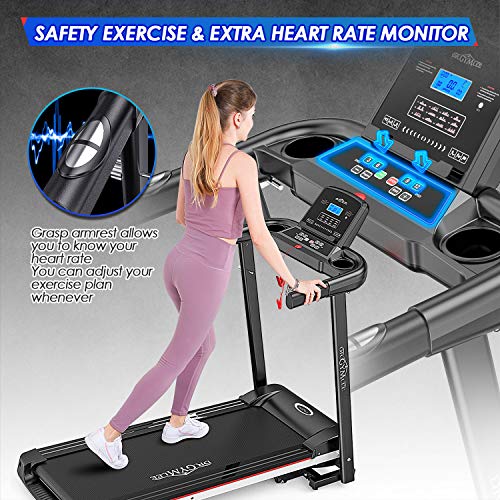 DR.GYMLEE Folding Shock Absorption Smart Treadmill Electric Motorized Running Machine for Home Use, Health & Fitness Walking Exercise Treadmill with LCD Screen Pad/Phone Cup Holder for Women Men Teens, Black Item Sku: