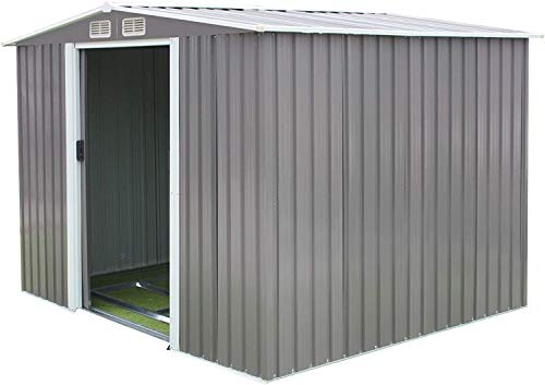 Kinbor Garden Tool Storage Shed Outside Building Shed 8x6 Feet Outdoor House Shed with Sliding Door for Backyard Garden Lawn, Gray