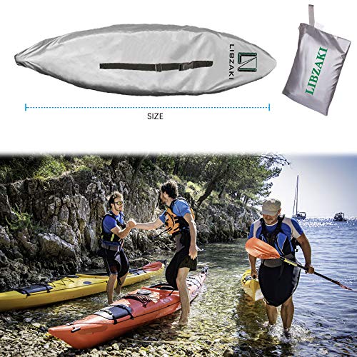 LI LIBZAKI LIBZAKI 12.3-13.5ft Waterproof Kayak Cover-300D Storage Dust Cover UV Protection Sunblock Shield for Fishing Boat/Kayak/Canoe -L, Suitable for 12.3-13.5ft kayak