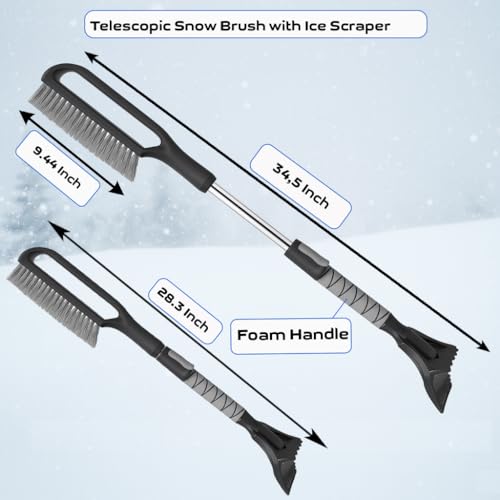 34.5" Snow Brush & Ice Scrapers for Car Windshield with Foam Grip for Cars Extendable, SUV, Trucks - Detachable Сar Scraper - No Scratch - Heavy Duty Handle, Snow Broom, Remover, Easy Scraper, Gray