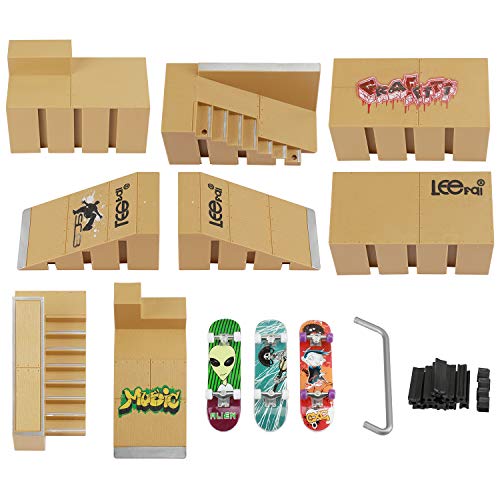 Loving Skate Park Kit, Skate Park Kit Ramp Parts for Finger Skateboard Park Kit Part Training Props with 7 Finger Skateboard 3 Finger Bike (8PCS)