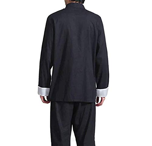 • DJF Men's Kung Fu Suit Chinese Martial Arts Uniform Meditation Suit Roll-Up Sleeve Frog Button Jacket Pants Outfit (Black, S)