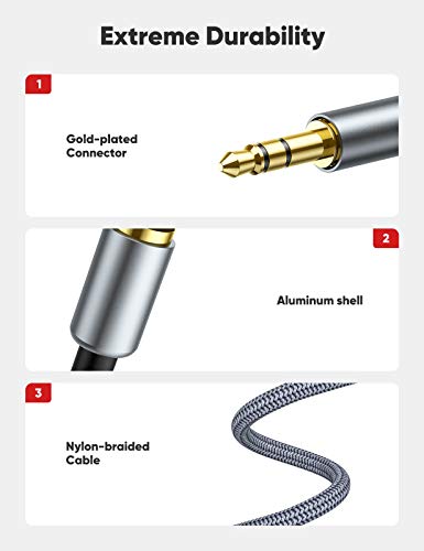 2 Pack RCA Cable, Oldboytech RCA to 3.5mm [8ft/2.4M, Hi-Fi Sound] Nylon-Braided RCA to AUX Audio Cable Compatible with DJ Controller Speaker Turntable TV Car Stereo Hi-Fi Amplifer Phone Gold-Plated, Grey Item Sku: