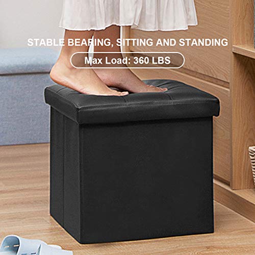EYLAEM Ottoman with Storage, 15 Inches Footrest Stool Cube Boxes, Folding Black Ottomans with Foam Padded Seat, Storage Chest, Coffee Table/Puppy Step, Max Static Load 380 lbs, Faux Leather