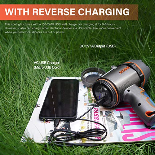 GOODSMANN Spotlight LED Rechargeable 1000 Lumen 12V Waterproof Flashlight with Switch Lock USB Cable for Work and Outdoor Boating Fishing Hiking Hunting and Walking Item Sku: