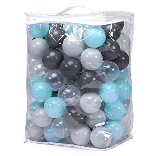 STARBOLO Ball Pit Balls - 100pcs Phthalate Free BPA Free Non-Toxic 2.16Inches Crush Proof Play Balls Play Tent Pool Playhouse Playpen Party Decoration (100 Balls), Gray/Light Gray/Aqua/Transparent