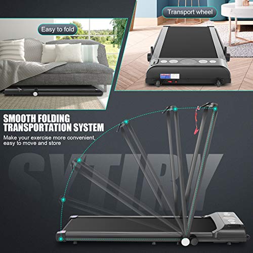 SYTIRY 2-in-1 Foldable Treadmill, Home Treadmill with LED Screen and Bluetooth Speaker, 2HP Folding Treadmill, Walking Machine Suitable for Home, Office, Gym (Black) Item Sku: