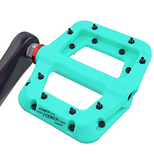 FOOKER MTB Pedals Mountain Bike Pedals 3 Bearing Non-Slip Lightweight Nylon Fiber Bicycle Platform Pedals for BMX MTB 9/16" (922-Green Needle Roller Bearing), Default