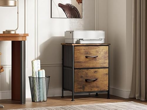 WLIVE Night Stand, Small Dresser with 2 Drawers & Wooden Top, Nightstand with Fabric Bins, Bedside Table End Table for Bedroom, Closet, Entryway, College Dorm, Rustic Brown, A-rustic Brown, 1 Piece Item Sku: