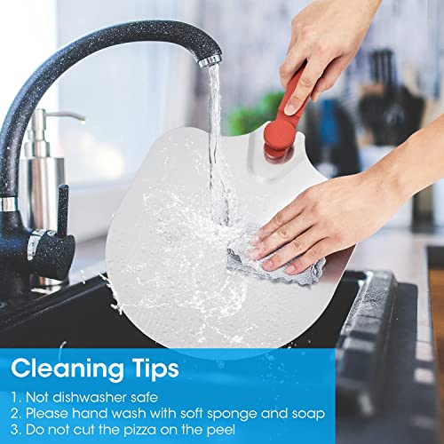 Unicook Pizza Peel 12 x 14 Inch, Aluminum Pizza Paddle with Foldable Handle, Pizza Spatula for Oven and Grill, Essential Baking Tools for Homemade Pizza and Bread, 21" Overall Length, White/Red