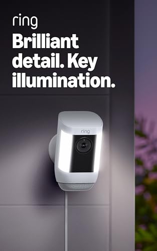 Ring Spotlight Cam Pro, Plug-In, Home or business security, Retinal 2K Video, Color Night Vision and Two-Way Talk with Audio+, White, 1 Pack Item Sku: