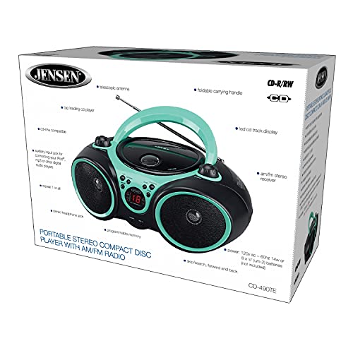Jensen CD-490 Portable Sport Stereo CD Player Boombox with AM/FM Radio, Aux Line-in & Headphone Jack (Limited Edition Colors) (Aqua Teal) Item Sku: