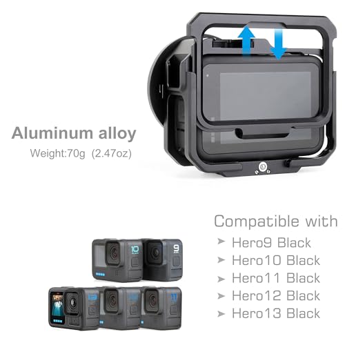 • SOONSUN Aluminum Case with UV Filter and Charging Side Door for GoPro Hero 13 12 11 10 9 Black, Metal Cage Protective Frame Housing Built-in Dual Cold Shoe Mount to Connect Video Light Microphone