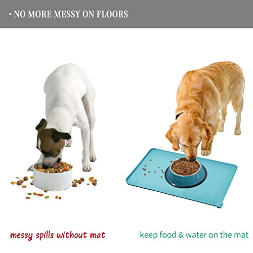 Reopet Waterproof Pet Feeding Mat with High Raised Edges, Heavier and Thicker Placemats for Cat Dog Water Bowl with BPA Free, Dogs Cats Food Mats for Messy Drinkers to Prevent Spill and Protect Floors