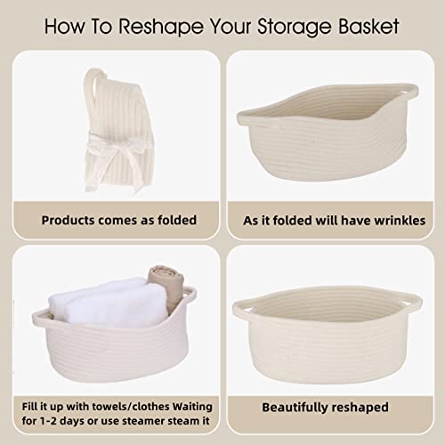XUANGUO Small Woven Basket Cute Oval Cotton Rope Gifts Basket with Handle Empty Baby Wicker Storage Basket Nursery Box Bin Kids Organizer Cat Dog Toy Basket Easter Basket White, Small or mini Item Sku:
