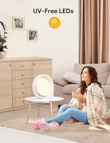MediAcous 11000Lux Sunlight Lamp, 4 Brightness Levels & Color Temperature & Timer, Daylight Lamp with Memory Function for Home/Office/Decoration, White, 7.3 inches (light surface) Item Sku: