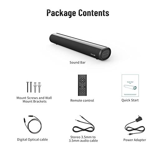 • LITTOAK Sound Bar for TV, BT 5.0 Soundbar, 50 Watt 16 Inch Soundbars for Home Audio, Gaming, Projectors, TV Speakers Supports HDMI ARC/Optical/RCA/USB/AUX in and Sub Out Connection, Wall Mountable