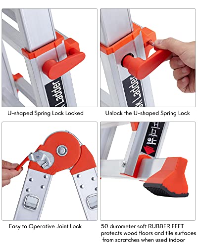LANBITOU Ladder, A Frame 5 Step Ladder Extension, 17 Ft Anti-Slip Multi Position Ladder, Storage Folding Ladder, 330 lbs Security Load Telescoping Aluminum Ladders for Stairs Home Indoor Outdoor Roof