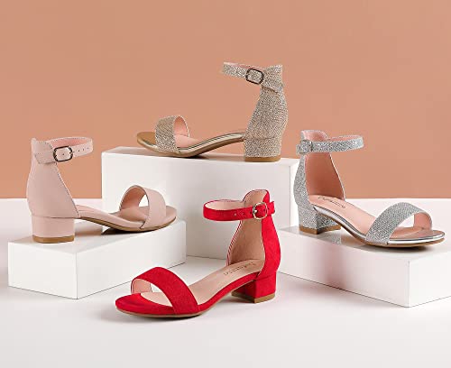 Dufannie Nude Sandals Heels for Girls Open Toe Ankle Strap Chunky Heel Girls Dress Shoes Graduations Party Wedding Low Heel Sandals for Toddler Littler Big Kids(3603Nude 4), Single Nubuck Nude, 4 Big Kid Item Sku: