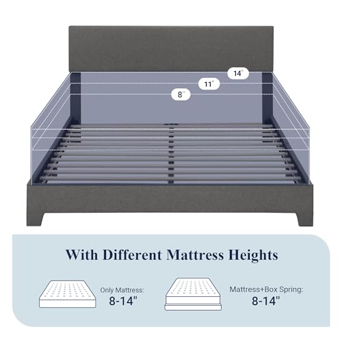 Allewie Full Size Bed Frame with Adjustable Headboard, Upholstered Platform Bed with Wood Slats, Heavy Duty Mattress Foundation, No Box Spring Needed, Noise-Free, Easy Assembly, Dark Grey Item Sku: