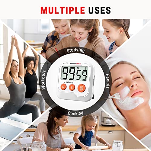 • ThermoPro TM03 Digital Timer for Kids & Teachers, Kitchen Timers for Cooking with 2-Level Alarm Volume, Countdown Timer Stopwatch for Classroom Supplies, Exercise, Baking, Playtime or Work, 2-Pack